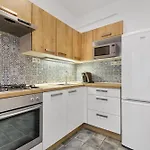 Az apartman magába foglal erkélyt, nappalit és konyhát mosógéppel és klímaberendezéssel a maximális kényelem érdekében.